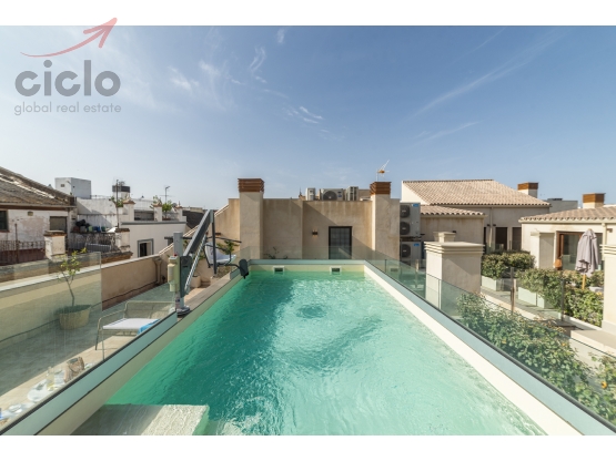 El edificio destaca por su rehabilitación integral y su baja densidad: pocas viviendas, dos accesos, ascensor y una piscina con solárium en la azotea, un valor escaso en pleno casco histórico de Sevilla.